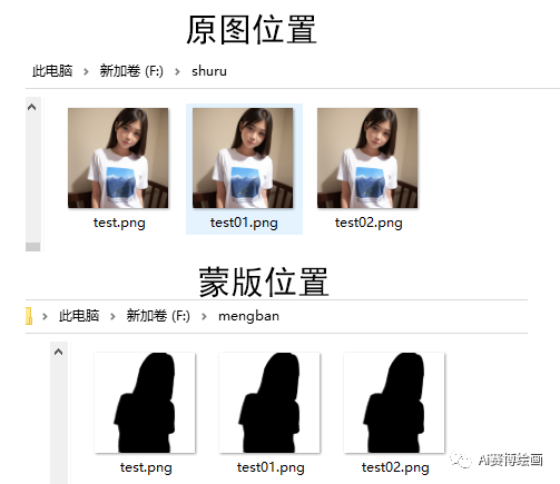 需要注意的是路径不要携带任何中文或者特殊字符,不然SD会出现报错情况,并且原图的名字和蒙版的名字需要一致。