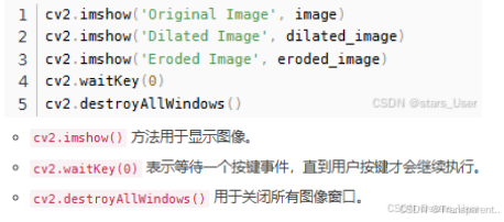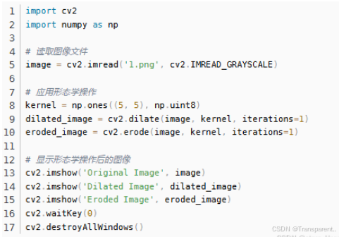 本文将详细介绍如何使用 OpenCV 库中的形态学操作来进行图像处理,并通过具体的代码示例来展示如何应用这些操作。本文介绍了如何使用 OpenCV 库进行图像的形态学操作,包括膨胀和腐蚀操作,并通过一个具体的代码示例展示了这些操作的效果。膨胀(Dilation):膨胀操作可以扩大图像中的亮区或白区,使得图像中的白色区域更加明显。腐蚀(Erosion):腐蚀操作则相反,它可以缩小图像中的亮区或白区,