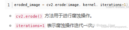 腐蚀(Erosion):腐蚀操作则相反,它可以缩小图像中的亮区或白区,使得图像中的白色区域变小。腐蚀操作有助于消除图像中的小噪声点。