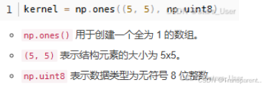 形态学操作主要包括两种基本操作:膨胀(Dilation)和腐蚀(Erosion)。这两种操作都是基于结构元素(Kernel)来定义的。结构元素通常是一个小的矩阵,用于定义操作的区域。