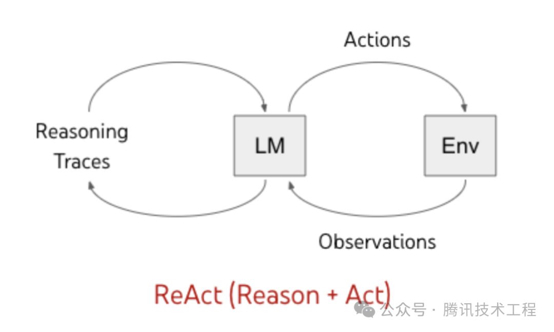ReAct(Yao et al. 2023) ,《ReAct: Synergizing Reasoning and Acting in Language Models》 这篇论文提出一种用于增强大型语言模型的方法,它通过结合推理(Reasoning)和行动(Acting)来增强推理和决策的效果。