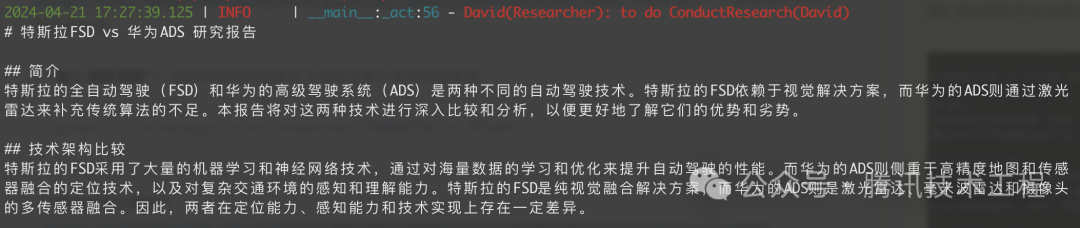 `~ python3 -m metagpt.roles.researcher "特斯拉FSD vs 华为ADS"`