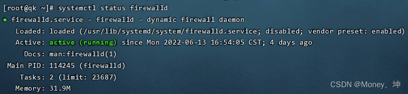 (active表示防火墙处于开启状态,此时是无法通过外网访问tomcat 的,需要开启防火墙,为了安全起见,通常我们只开启指定端口)