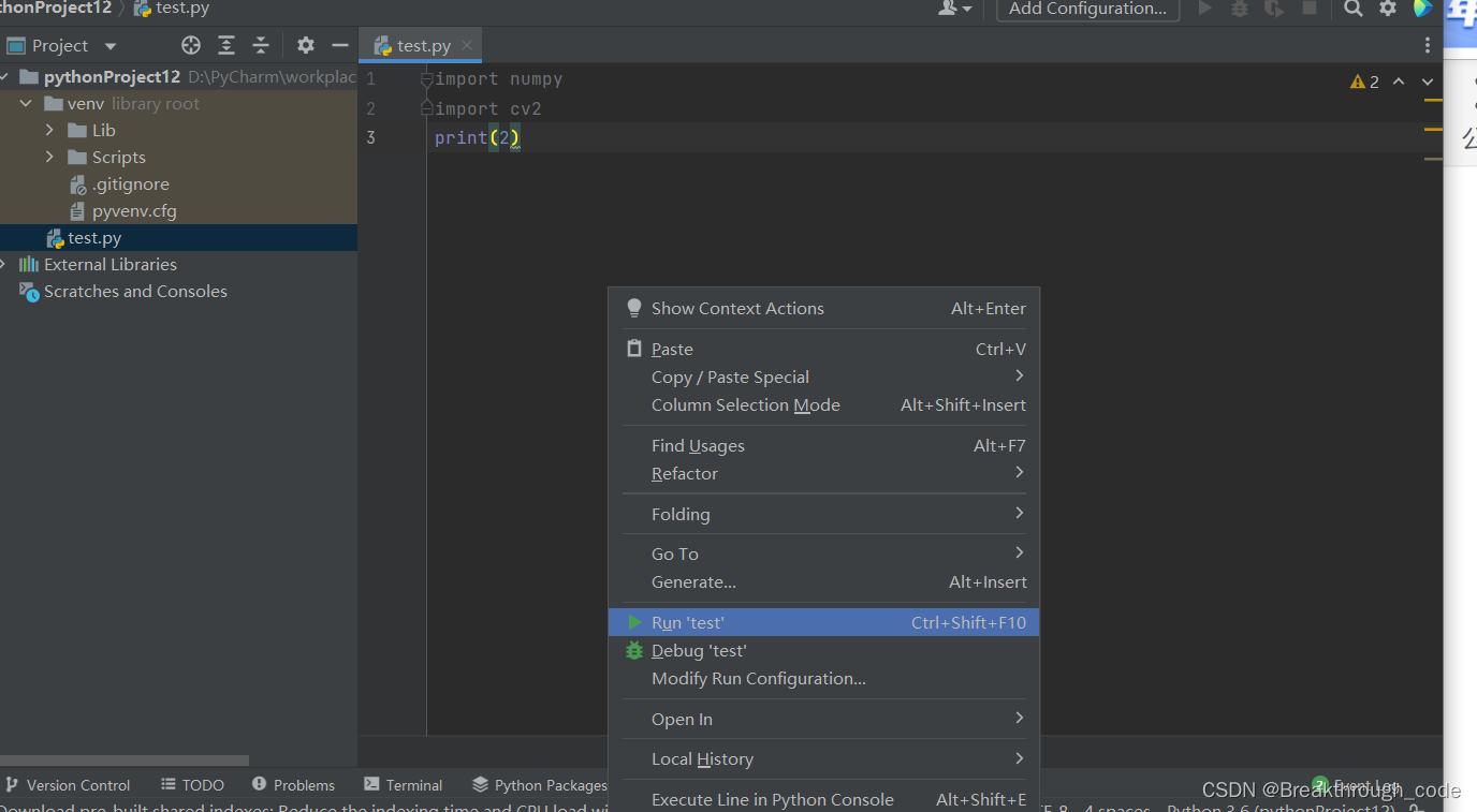(感谢该解决方案作者OpenCV装3.4.1.15 - 简书 (jianshu.com))