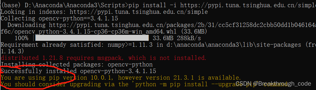 pip install -i https://pypi.tuna.tsinghua.edu.cn/simple opencv-python==3.4.1.15