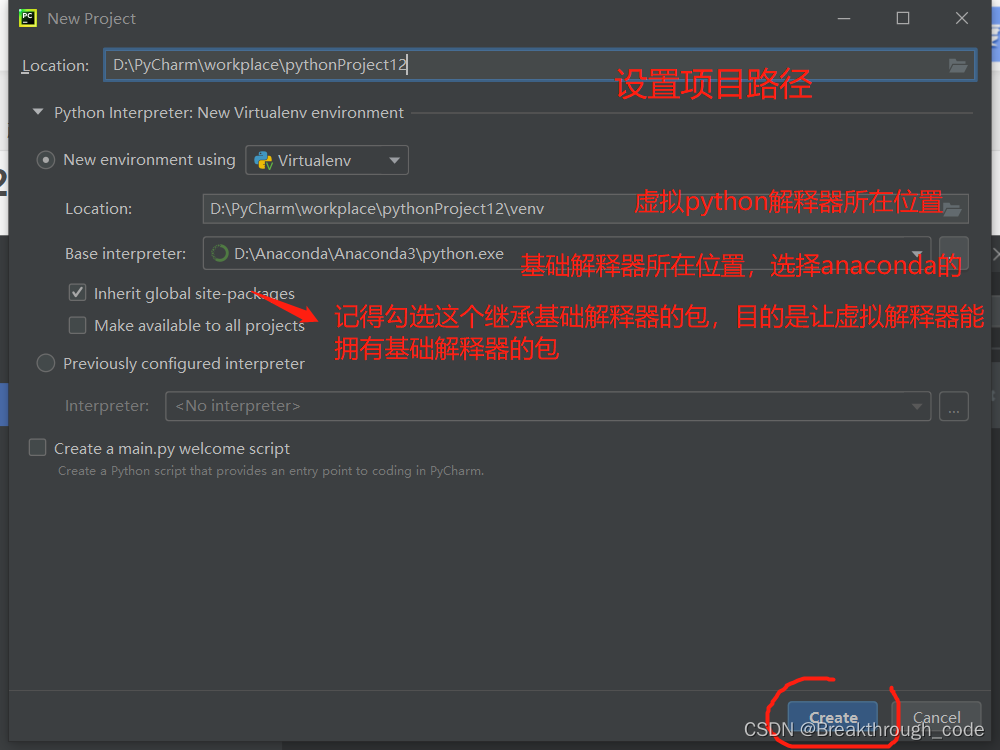Anaconda 安装和pycharm新建项目关联anaconda解释器设置(涉及opencv-python3.4.1.15)