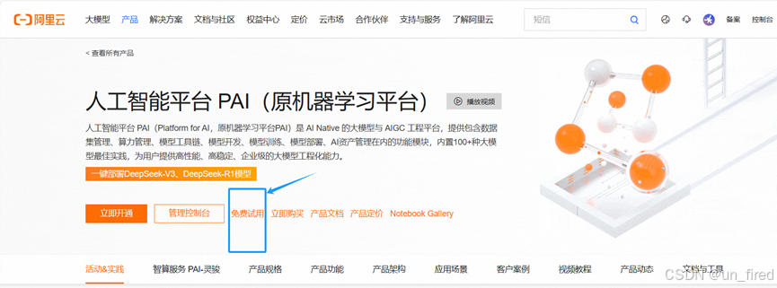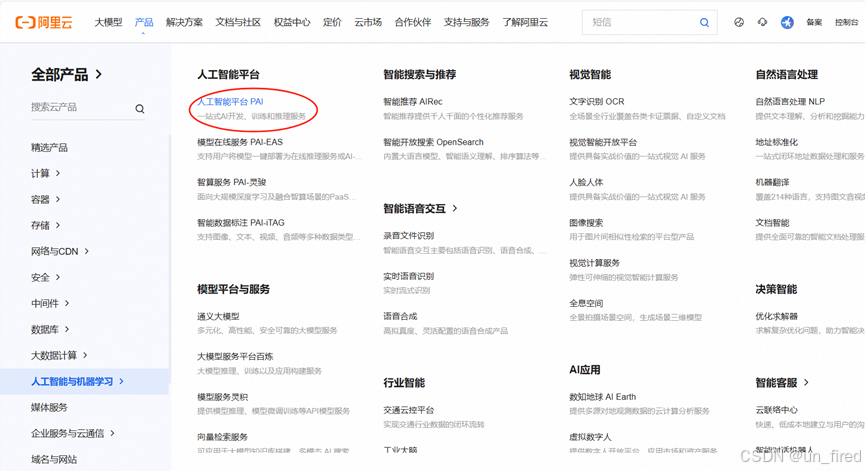 如图点击产品-人工智能与机器学习-人工智能平台PAI