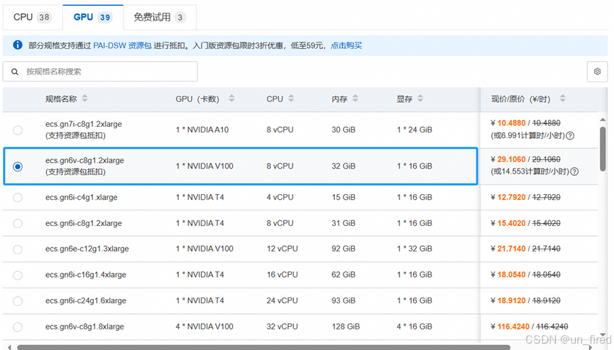 资源规格建议选择图中的V100