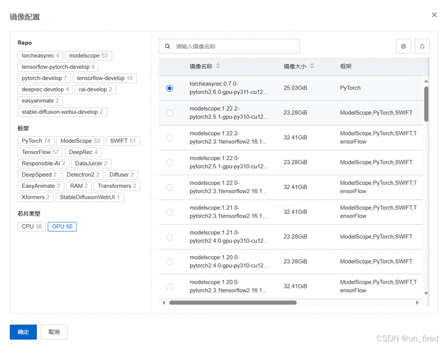 根据要使用的模型及其系统确定具体的镜像版本(正常情况下用默认的pytorch就行)