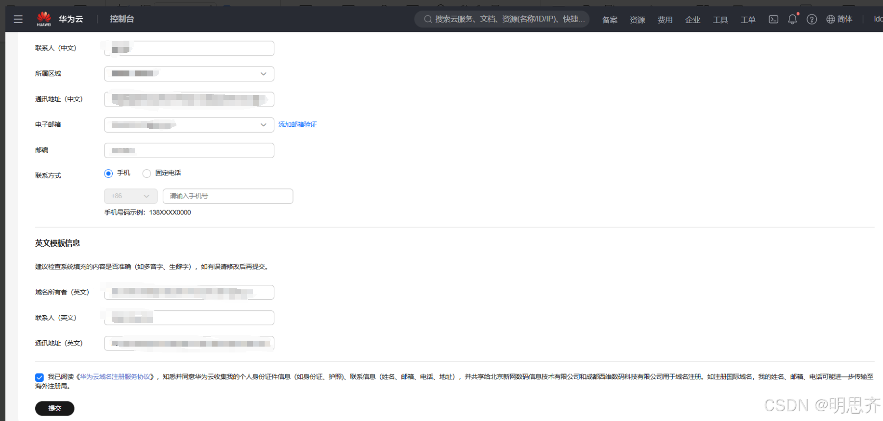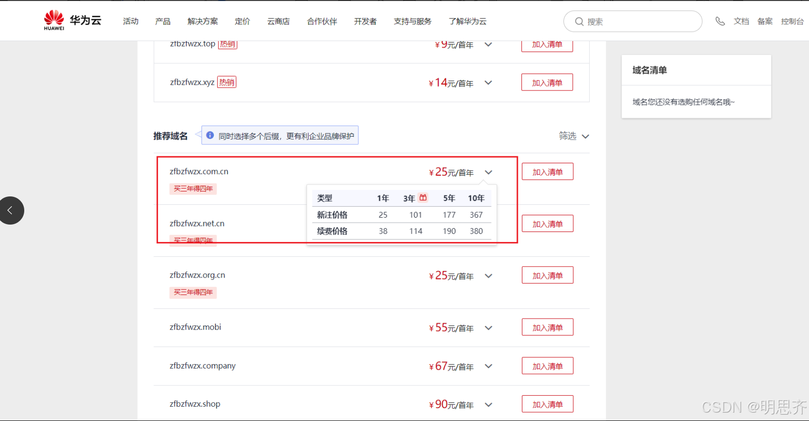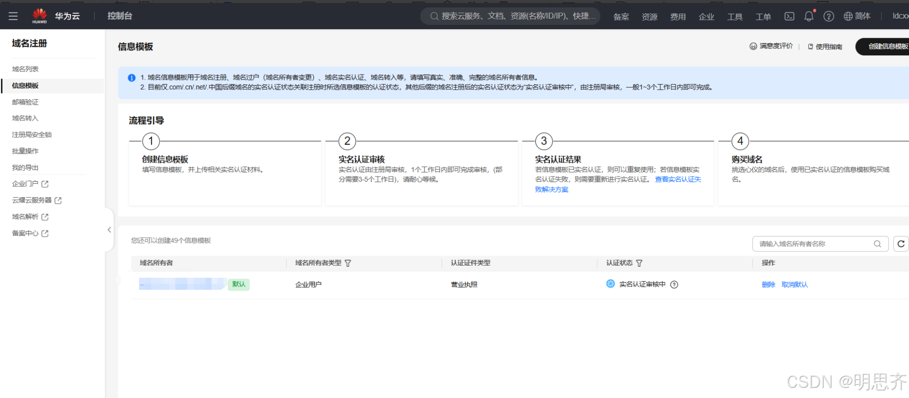 五、进行域名备案,填写相关信息。四、实名认证通过后,购买域名。