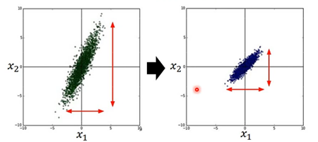 - 如 样本分布在二维,画一条线,取各个点到直线的距离,就能得到一个一维数据
