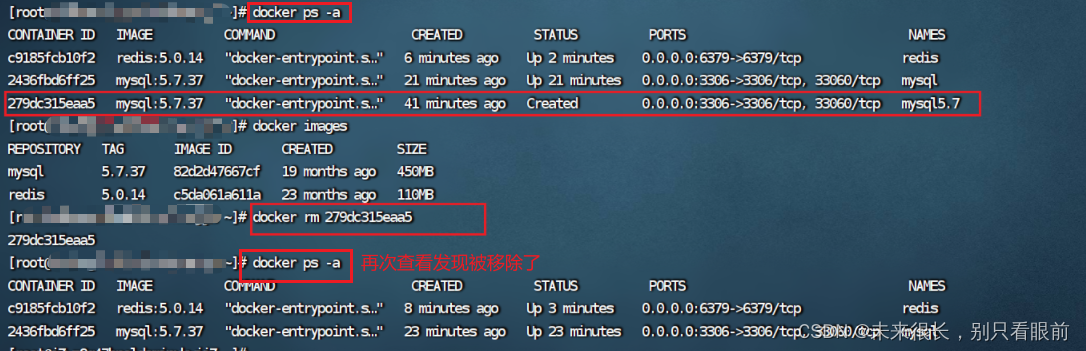 docker start MySQL的容器Id或者是MySQL容器的名称