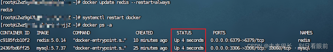 然后使用docker ps -a 查询容器中服务启动状态,看 status这个时间就知道了。