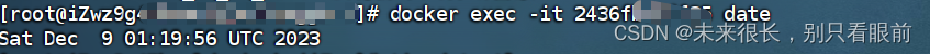 docker exec -it MySQL的容器Id或者是MySQL容器的名称 date