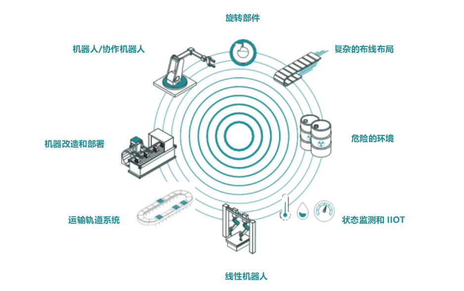 布线限制了连接到机器人/协作机器人的末端执行器(例如夹具、真空泵)的运动和灵活性,并且部署起来很麻烦。嵌入在传感器/执行器内部的无线解决方案消除了沿机械臂运行所需的电缆和附件。这种解决方案增加了灵活性,并降低了整体复杂性和成本。