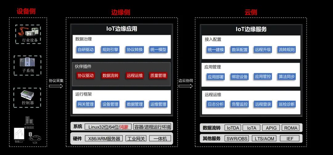 协议插件部署:支持伙伴开发的插件,通过IoT边缘远程部署到客户现场 的边缘服务器上。