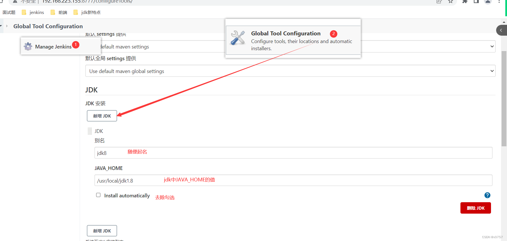 在jenkins所在的服务上安装jdk并配置环境变量。