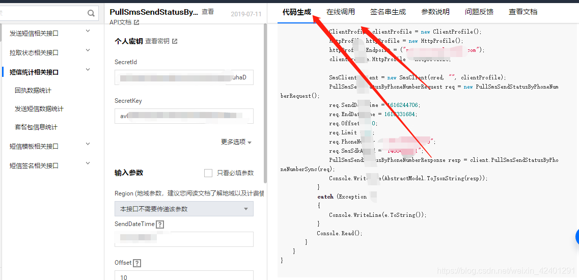 1.创建项目2.通过 nuget 安装(推荐)sdkhttps://cloud.tencent.com/document/product/382/431983.接口https://cloud.tencent.com/document/product/382/387644.可以通过在线调试填写参数,自动生产代码https://console.cloud.tencent.com/api/explore