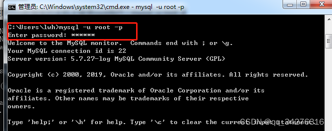 (1)在安装Mysql数据库的主机上登录root用户:mysql -u root -p