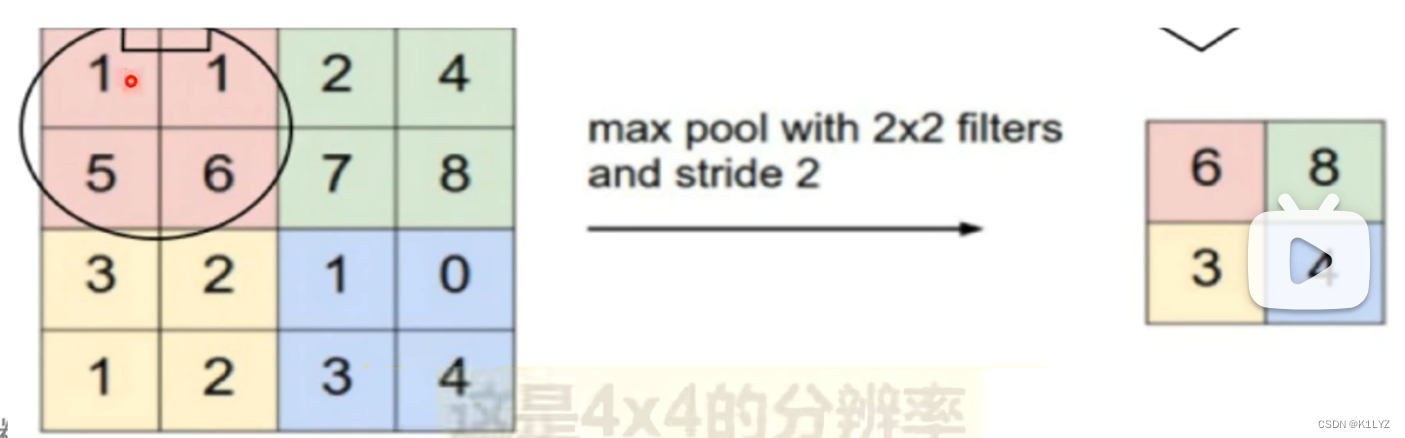 2.池化方法有最大池化、求和池化、平均池化等(这三个定义空间邻域来实现,一般最大池化效果最好,下面2x2最大池化示意图)