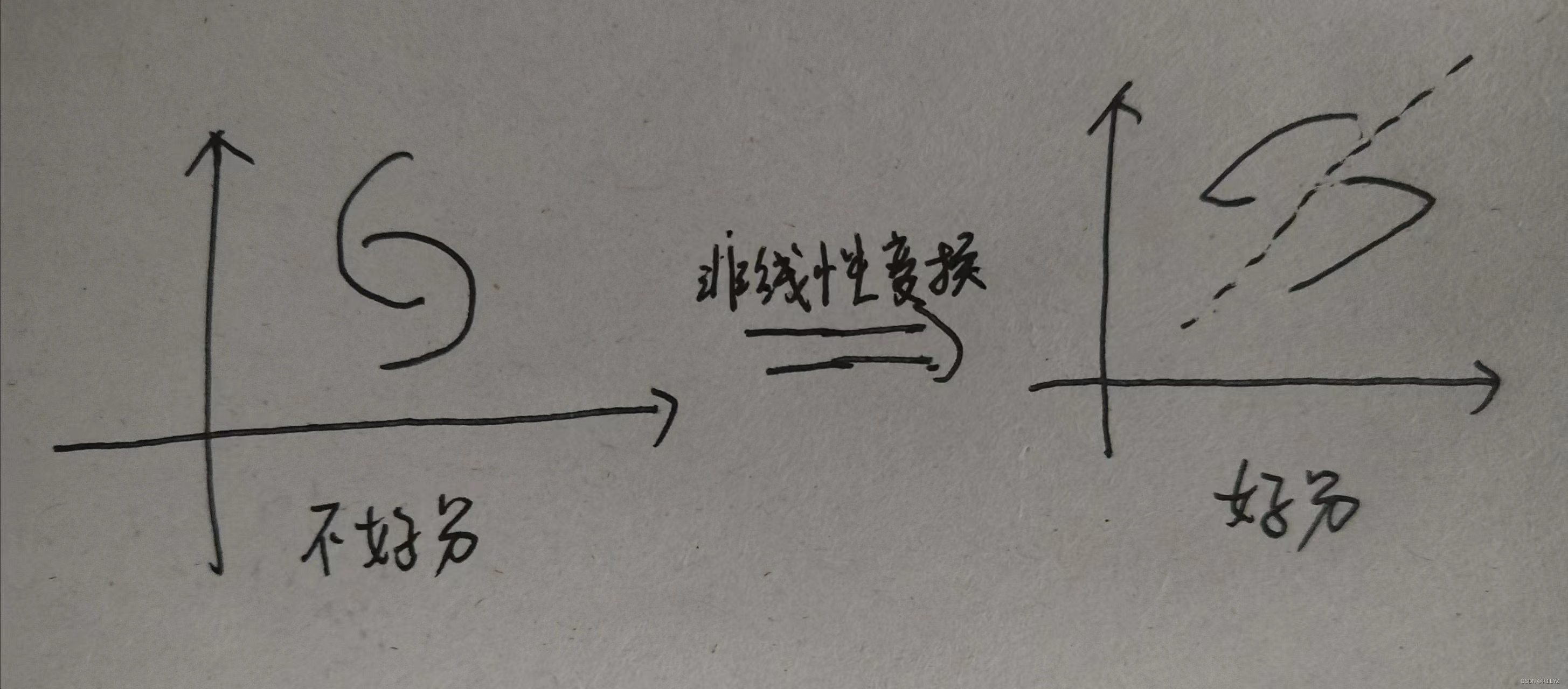 在加权求和这一线性变换后,再利用激活函数引进非线性变换,使得能找到一个超平面(即一系列交互的特征)来对样本进行区分