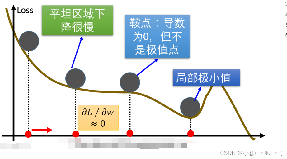 在传统的梯度下降优化算法中,如果碰到平缓区域,梯度值较小,参数优化变慢 ,遇到鞍点(是指在某些方向上梯度为零而在其他方向上梯度非零的点。),梯度为 0,参数无法优化,碰到局部最小值。实践中使用的小批量梯度下降法(mini-batch SGD)因其梯度估计的噪声性质,有时能够使模型脱离这些点。