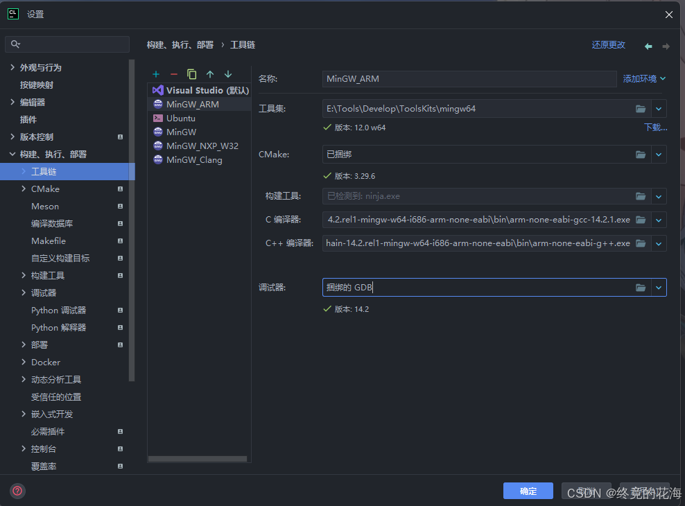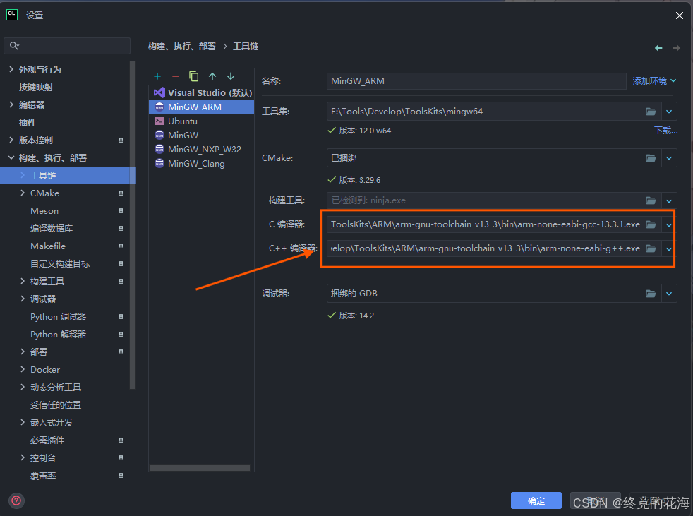 这里可以看到我们之前配置的13.3那个版本的工具链,替换掉就行了。当然,如果你之前没有配置过,这里新建一个就行了。