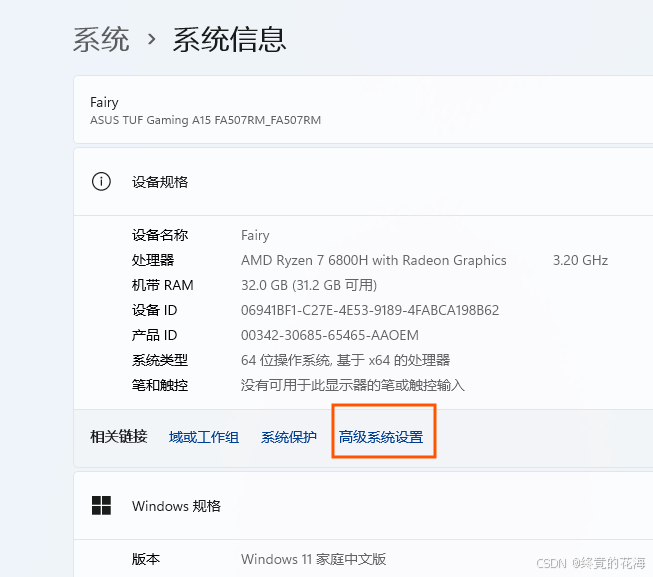 按下Win+X,弹出的选项中,选择【系统】,然后进入【高级系统设置】里
