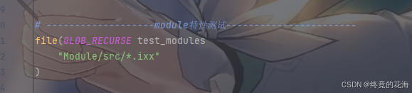 在CMakelists添加这个文件,先用file函数包含刚才我们创建的文件,由于我这个文件是放在当前目录下的Module下的src目录,所以写成了下面这个样子。