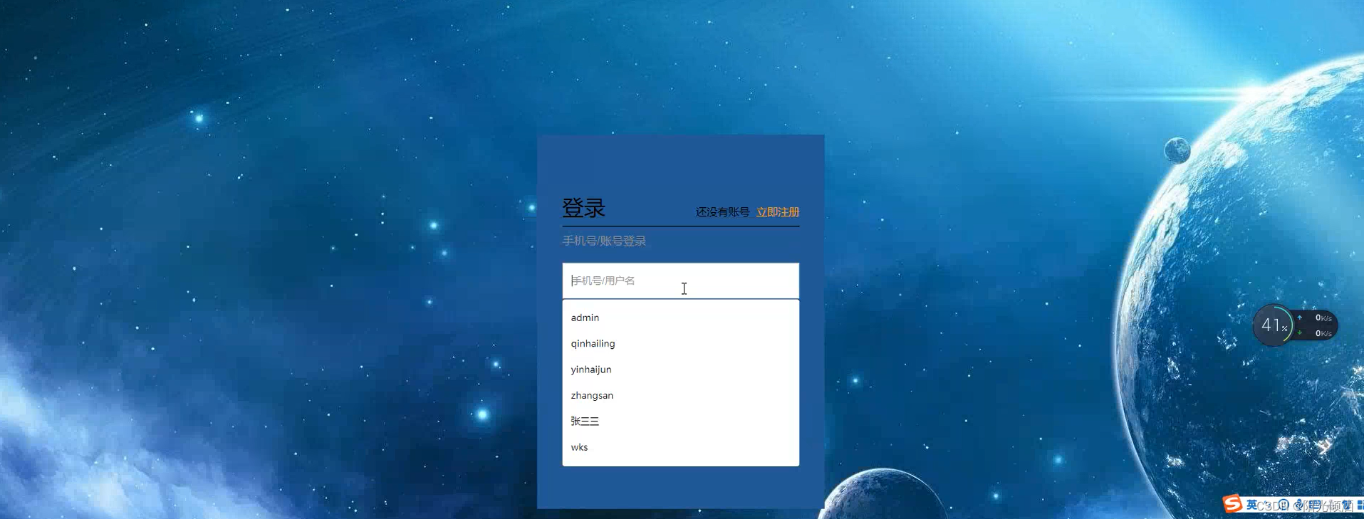 用户只有先进行登录,才可以使用本系统。登录页面的设计比较简洁大方,只使用了账号、密码及登录按钮三个表单元素,用户输入正确的账号和密码之后可以进入到系统的首页面。如果不输入账户密码则会进行表单验证,提示用户名和密码不能为空。登录页面的设计如下图所示: