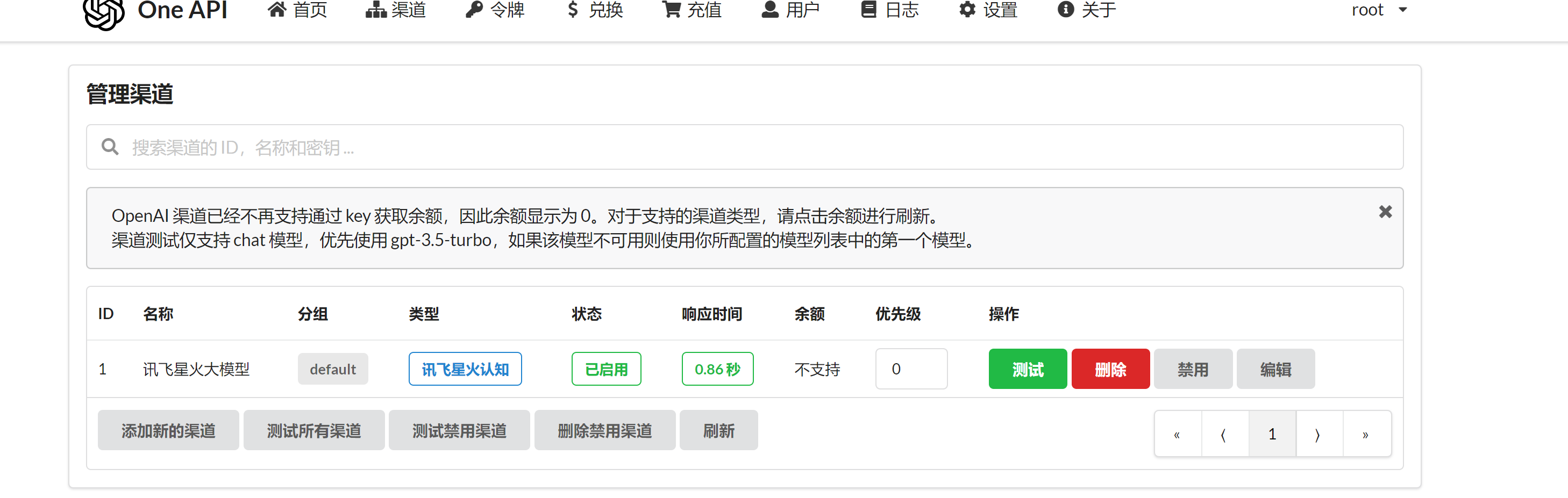 + 配置讯飞星火 3.5 模型!- 查看渠道列表