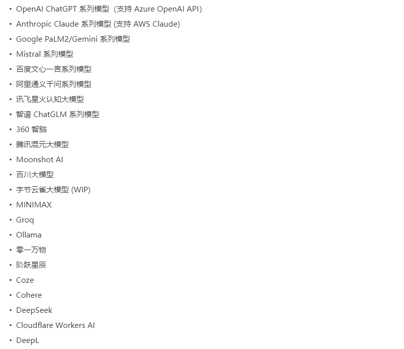 通过标准的 ` OpenAI API` 格式访问所有的大模型支持多种大模型: