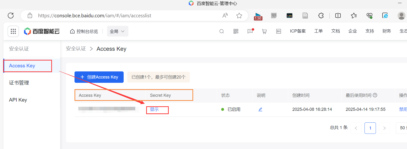 本文在上文基础上补充前置步骤,包括ak和sk的生成(ak=ACCESS_KEY, sk=SECRET_KEY)