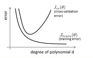 下图表示了 训练误差和测试误差与模型复杂度的关系。当模型 的复杂度增大时,训练误差会逐渐减小并趋于0;而测试误差会先减小,达到最小值之后又增大。当选择的模型复杂度过大时,就会出现过拟合。所以我们选择最优的模型时,往往以达到使测试误差最小为学习目的。