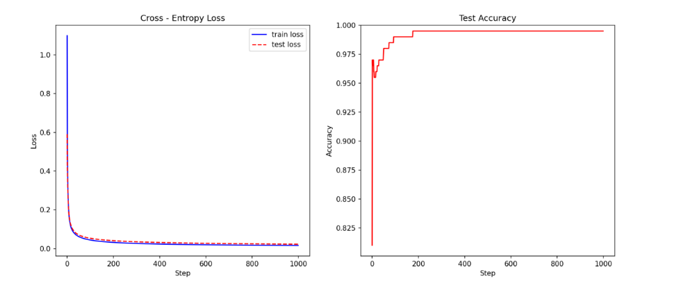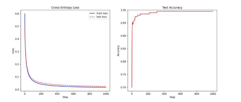 - (1 - y) * torch.log(1 - y_pred + eps)) / len(x_test)