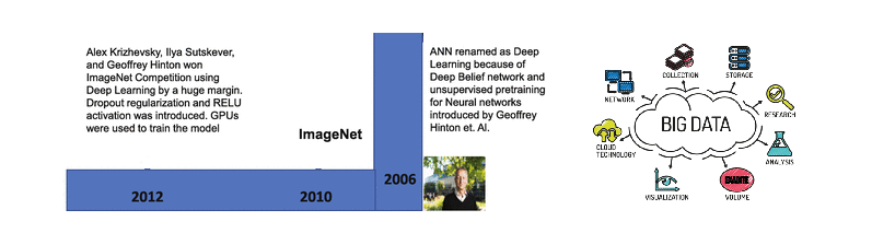 这一次运算力的问题终于被解决了,神经网络在理论研究和硬件设备两个必要条件都具备了。同一时期大数据技术的发展又为训练深层神经网络提供了原材料。