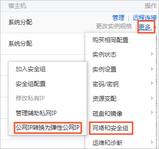 - 将源实例的公网IP转换为弹性公网IP。具体操作,请参见专有网络类型ECS公网IP转为弹性公网IP。