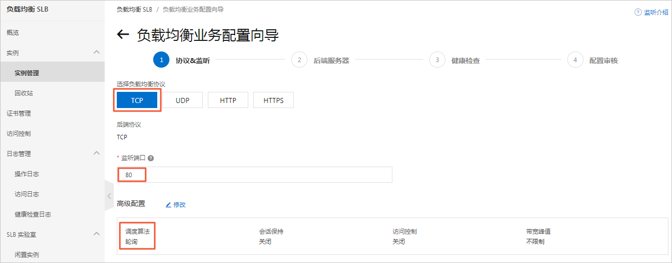 - 负载均衡协议:选择TCP。