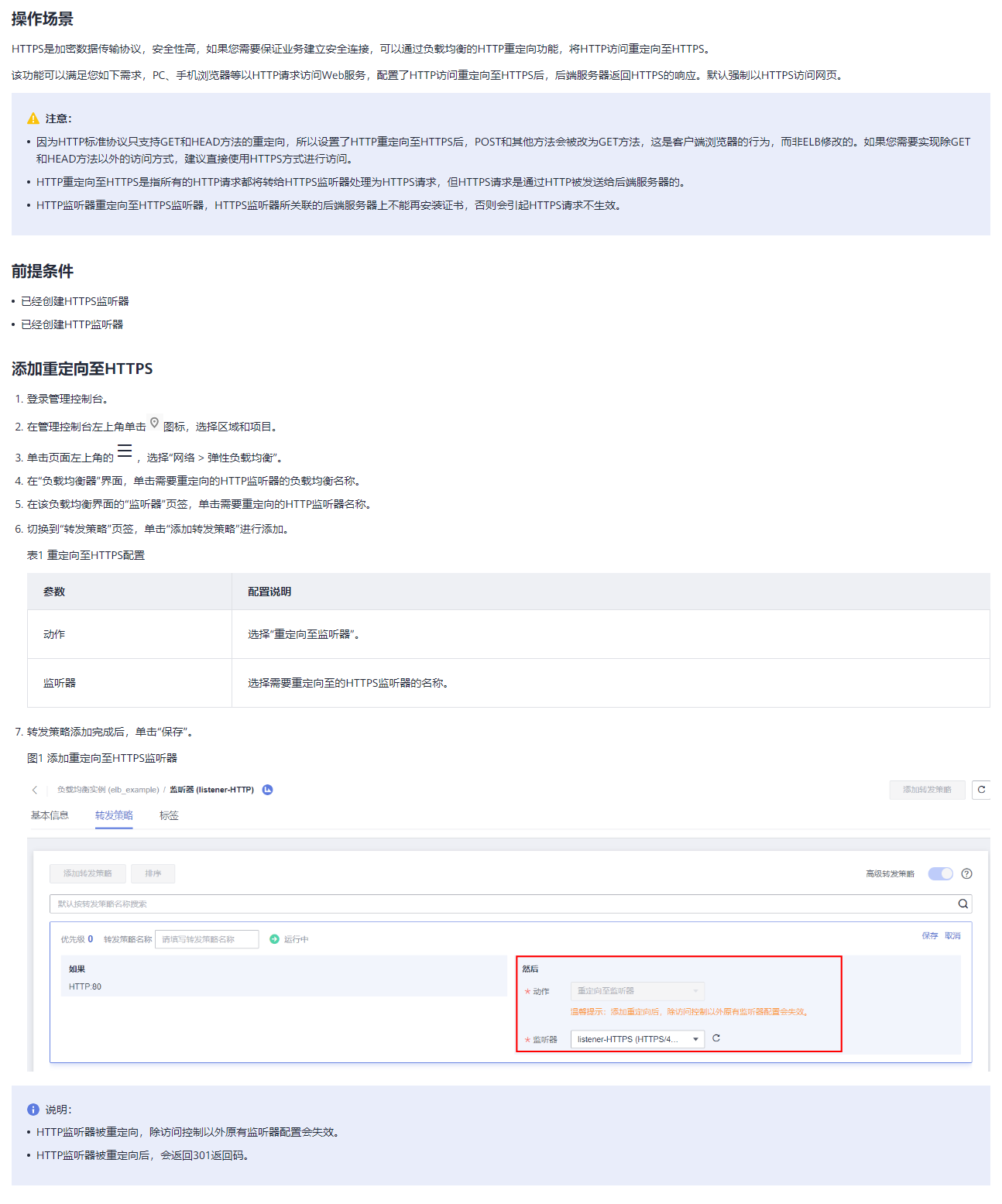 项目部署在华为云上,之前在nginx服务器上配置301跳转,页面访问总是报错重定向次数过多,之后就想是否直接可以在负载均衡上做跳转,于是查官方文档果然有方法,于是乎先记录下来。