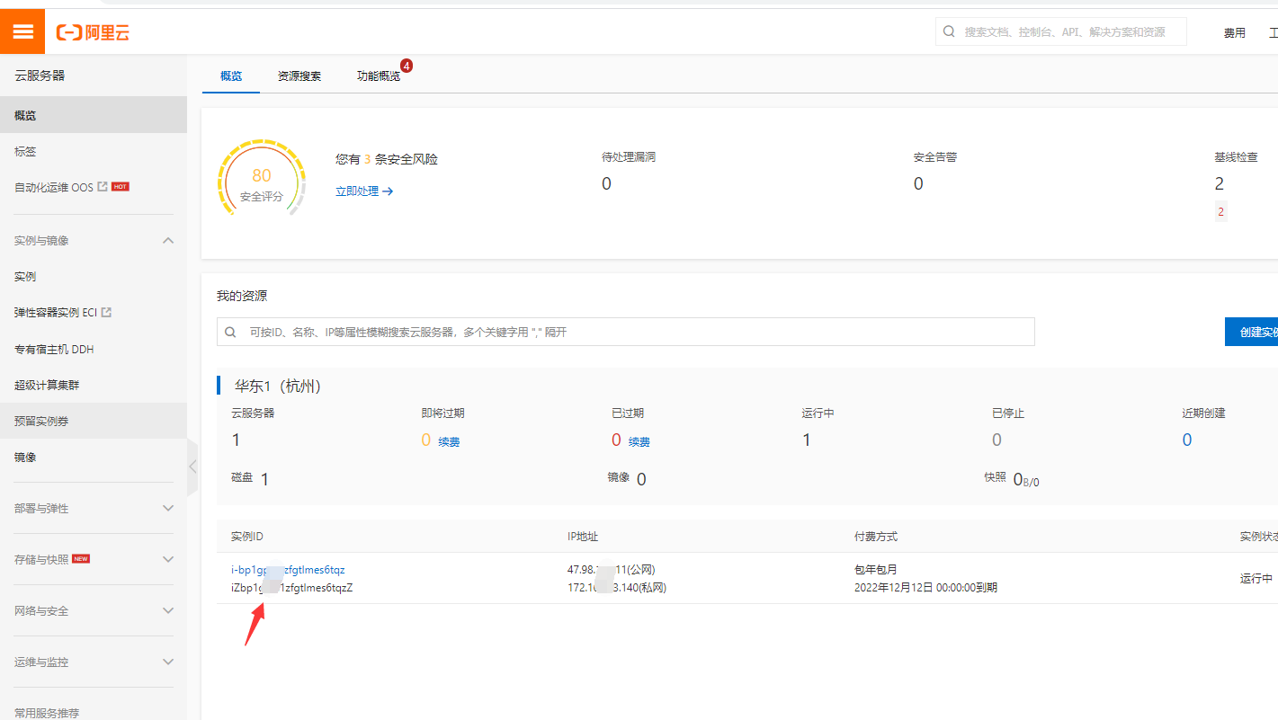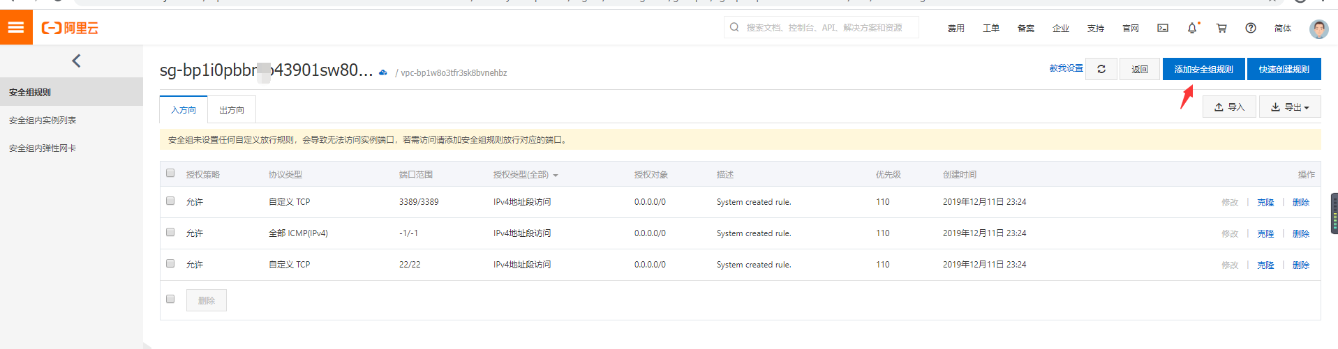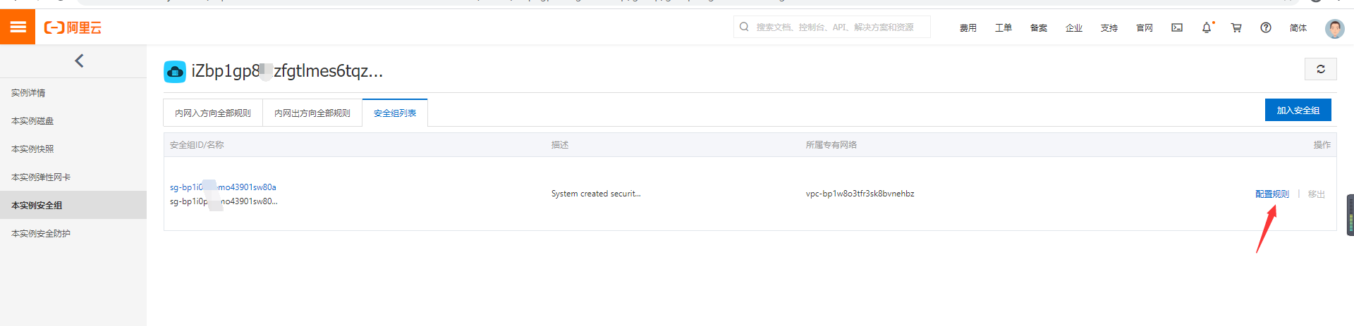 解决办法,给实例添加安全组规则,具体步骤如下: