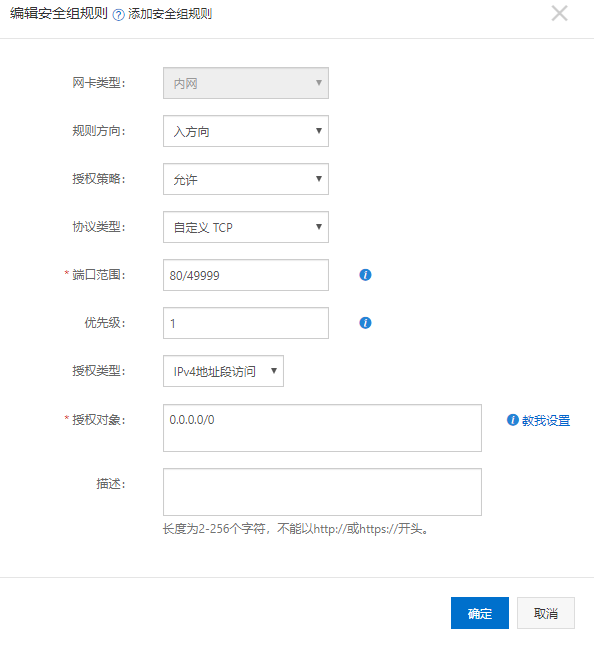 xshell连接的阿里云实例(centos7),使用curl http://localhost:32768可以访问成功;但使用浏览器远程访问(http://ip:32768),提示无法访问此网站;解决办法,给实例添加安全组规则,具体步骤如下:1.登录阿里云,点击自己的实例;2.点击‘本实例安全组;3.点击配置规则;4.点击‘添加安全组规则’;5.弹窗中填入信息,如下图...
