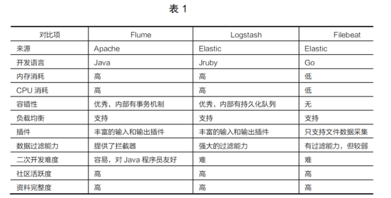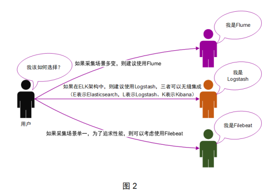Flume、Logstash和FileBeat的技术选型如图2所示: