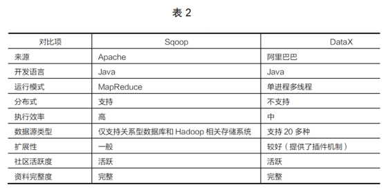 Sqoop和Datax常用于关系型数据库离线数据采集,它们之间的细节区别见表2: