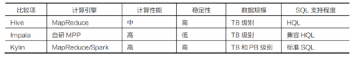 Hive、Impala和Kylin属于典型的离线OLAP数据分析引擎,主要应用在离线数据分析领域,它们之间的区别见表5。