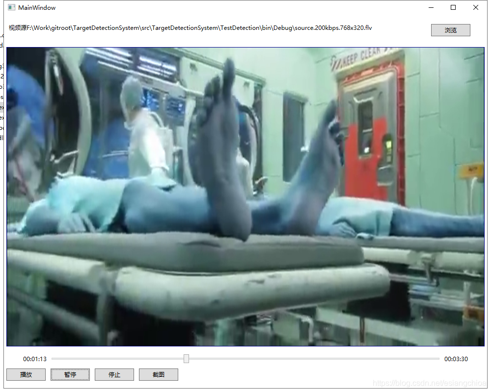 最近wpf项目用到视频播放,首先想到的就是vlc了,简单方便,网上教程也很多,实现也很顺利,但是正在和项目结合时候发现问题了,项目需求要视频帧上画出目标对象。使用vlc时发现。vlc的播放事件时按秒来的,且播放事件取到的帧和帧率无法对应,最后结果就是画上去的目标对象存在延迟,且不准确。没办法,老老实实用opencv来实现把,比较opencv时可以取到每一帧图片的。其效果如下:1、首先准备openc