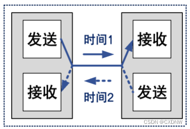 (2)半双工通信:数据能沿两个个方向传输,但需分时进行。