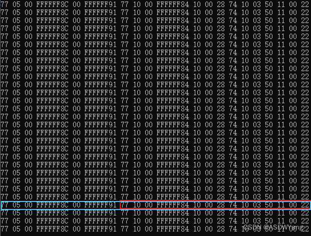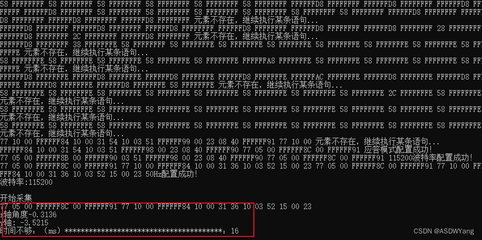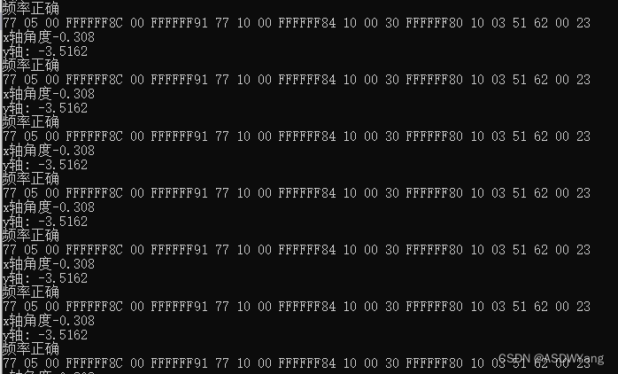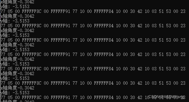 可以见到并不是0x77 0x10 0x00 0xFFFF84开头,原因在于当设置完成自动输出模式之后,其将返回的帧数据与角度数据结合到了一起。