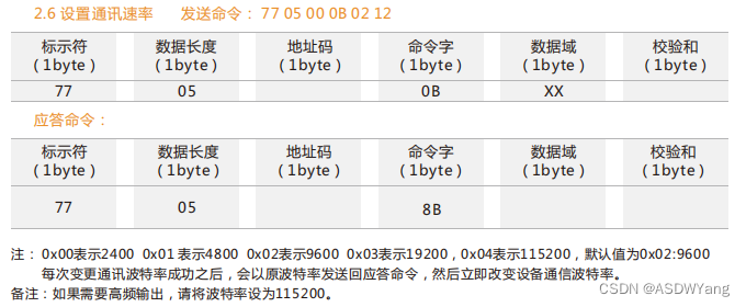 协议如下所示,首先需要设置为00应答模式,才可以需要重新设置串口的信息。