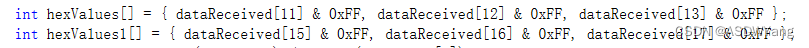 int hexValues1[] = { dataReceived[flag + 9] & 0xFF, dataReceived[flag + 10] & 0xFF, dataReceived[flag + 11] & 0xFF };