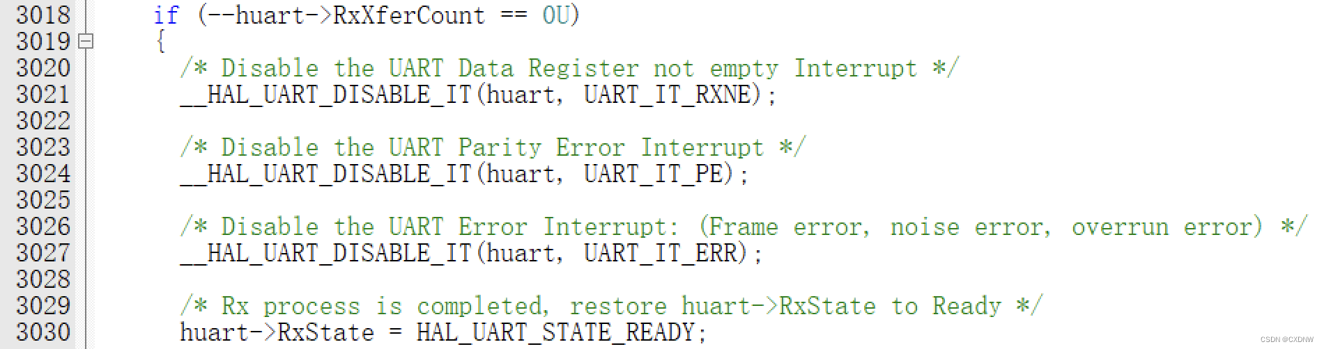 ②UART_Receive_IT函数中自动失能中断,需要再次开启中断才能再次接收数据。